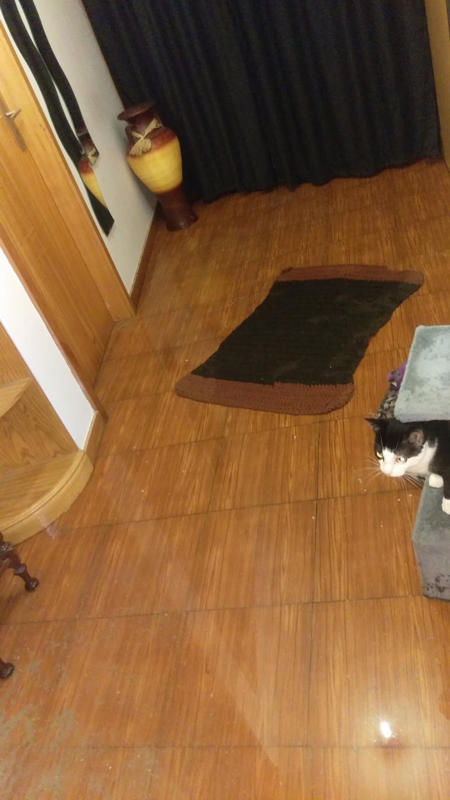 Limpei o chão da cozinha cheio de água e gordura que saiam do maldito buraco no chão e assim ficou...